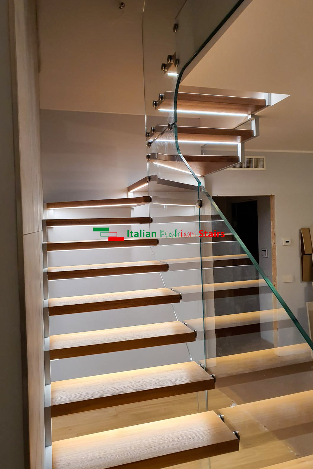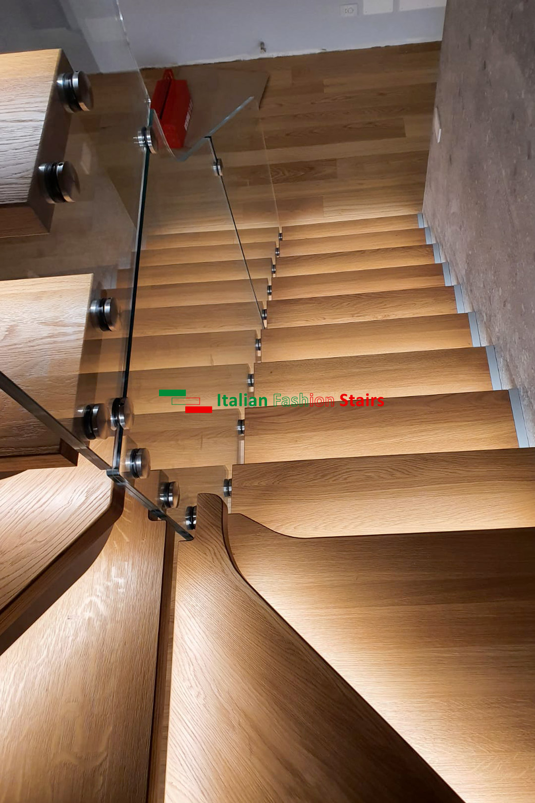 Luce Luce Luce a ancora Luce , Vetro Vetro e ancora Vetro…………sono un mix vincente per rendere la tua abitazione esclusiva, la scala nelle foto sotto ha strutture in metallo poste a fianco dei gradini lato muro dimensionate in modo che quasi non si vedono, gradini di legno di rovere spazzolato a sbalzo, sotto ad ogni gradino c’e’ una striscia led elemento che valorizza di piu’ una scala gia’ bella di suo, ma non solo, rende esclusivo anche tutto l’ambiente in cui si trova , questa scala Logica Sbalzo B-E-Glass cosi’ come tutti gli altri nostri prodotti e’ realizzata esclusivamente su misura per ogni singolo cliente, ovviamente un sentito ringraziamento ai clienti che hanno deciso di servirsi da noi riponendo in noi la loro fiducia, speriamo di averla ripagata.
